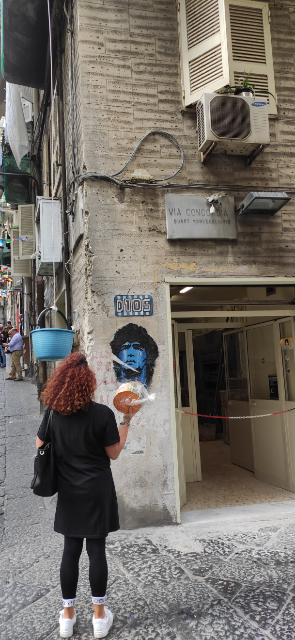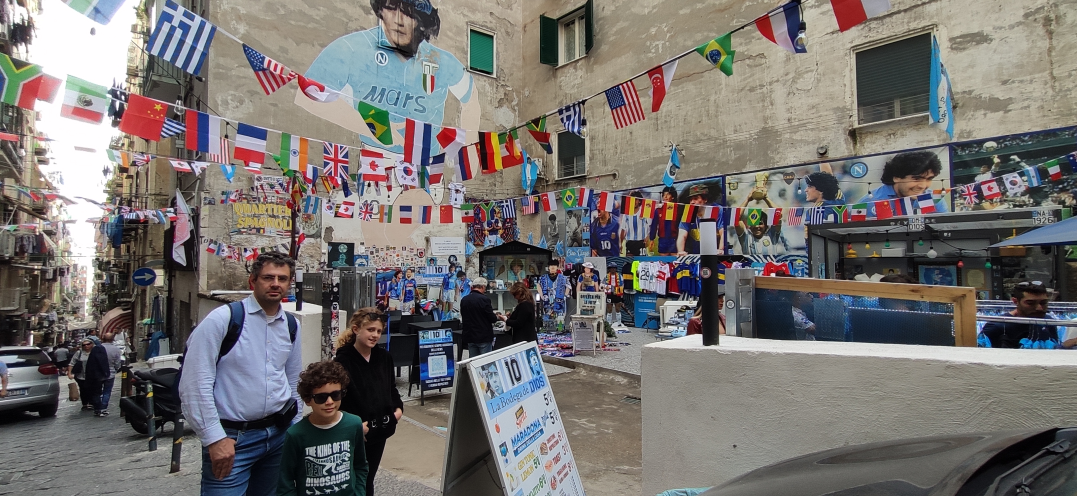 Другая особенность Неаполя - весь город до сих пор полон вывесками, футболками, плакатами и т.д. с надписью D10S. Диего Марадонна довольно долгое и успешное время был в SSC Napoli, и с тех пор от для неаполитанцев действительно как бог.