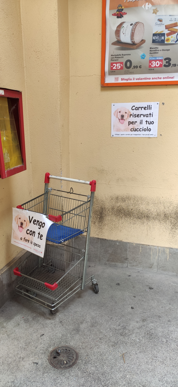 Хозяева квартиры несколько раз подчеркнули, что поблизости находился круглосуточно открытый магазин Carfour. Мы уже планировали, что же мы вкусненького купим на ужин, но, к сожалению, с тем французским Carfourе-ом, о котором мы думали, у этого магазина не было ничего общего, кроме некоторых продуктов этой торговой марки. Магазин был очень маленьким, неопрятным и т.д. Но – и это для детей было особенно интересно - с дополнительными тележками для покупателей с собаками! Они могут, точнее должны сидеть в тележке (фотографировать внутри магазина с собакой было как-то неудобно, так что сфотографировал только пустую тележку)