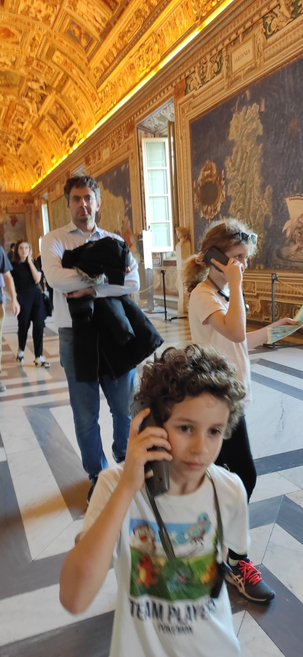 В самой Сикстинской капелле фотографировать нельзя, ну да в интернете достаточно фотографий. Народу дико много (когда я был в ней в прошлый раз, они ограничивали гораздо сильнее). Громко говорить нельзя, да и невозможно, но с небольшими разъяснениями капелла детям тоже понравилась.
