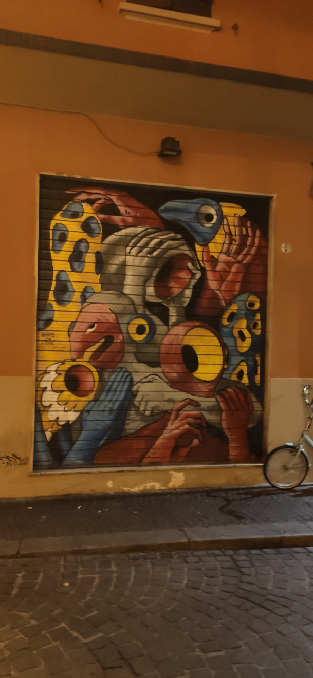 Ну и как в любом большом туристском городе, в Риме много уличных актёров и художников. Буня даже купила у одного из них на-spray-енную картину.