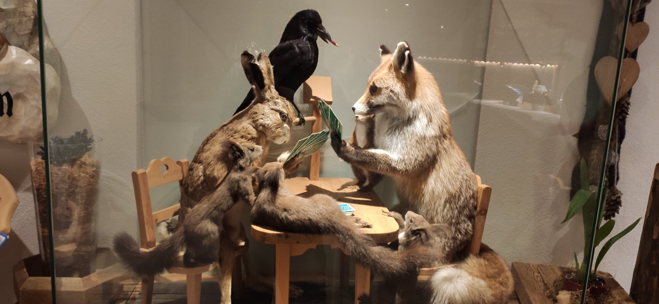 На следующий день доехали до нашей гостиницы. Называется она Hotel Höllroah, но линк я давать не буду, так как гостиница действительно средняя. Не то, чтобы плохая, но самое лучшее был приветственный ликёр фирмы Bauer (австрийцы в этом сильны). Даже не на первый, а на второй день, потому что в первый день нас «не ждали». Хорошо, что хоть свободная комната была. Мы получили что-то типа Baby-Junior-Suite. Т.е. места было достаточно. Но холодильника не было, хотя 4 звезды. Еда – как в столовой средней немецкой фирмы, а не как, например, в прошлом году в Швейцарии в трехзвёздочной гостинице с амбициями. По идее есть обед, но его надо заказывать во время завтрака, просто так прийти нельзя и нельзя получить его сухим пайком. Повсюду чучела животных, потому как бывший хозяин – охотник.